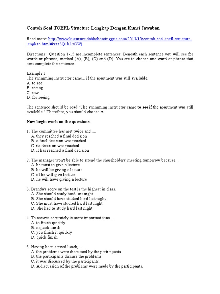 New Toefl Structure from imgv2-2-f.scribdassets.com Check spelling or type a new query. Maybe you would like to learn more about one of these? Download soal toefl lengkap pdf. We did not find results for: