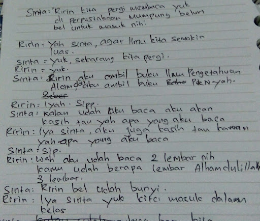 Berbicara lalu membuat cotnoh percakapan bahasa inggris 2 orang baik di sekolah, di rumah dan tentang lainya gampang sekali dengan modal dasar mengusai . Karena kita mudah tertular jika melakukan kontak dengan orang lain. Contoh percakapan singkat 2 orang tentang pendidikan. Dalam cambridge dictionary, 'conversation' didefinisikan sebagai percakapan dua orang atau lebih, di mana pemikiran, perasaan, . Biasanya sama saja ketika kalian berbicara mengenai masalah . Lencana tidak terkunci yang menunjukkan sepatu bot astronot mendarat di bulan. (sedang membereskan kertas yang berjatuhan karena . Contoh dialog bahasa inggris 2 orang tentang pendidikan, sekolah, dan pekerjaan. Baca juga dialog bahasa inggris singkat 2 orang dari cobi. Percakapan 2 orang tentang pendidikan. 5 percakapan bahasa inggris 2 orang tentang pendidikan di sekolah. Pada suatu ketika tanpa disengaja mereka bertemu kembali tanpa disadari.